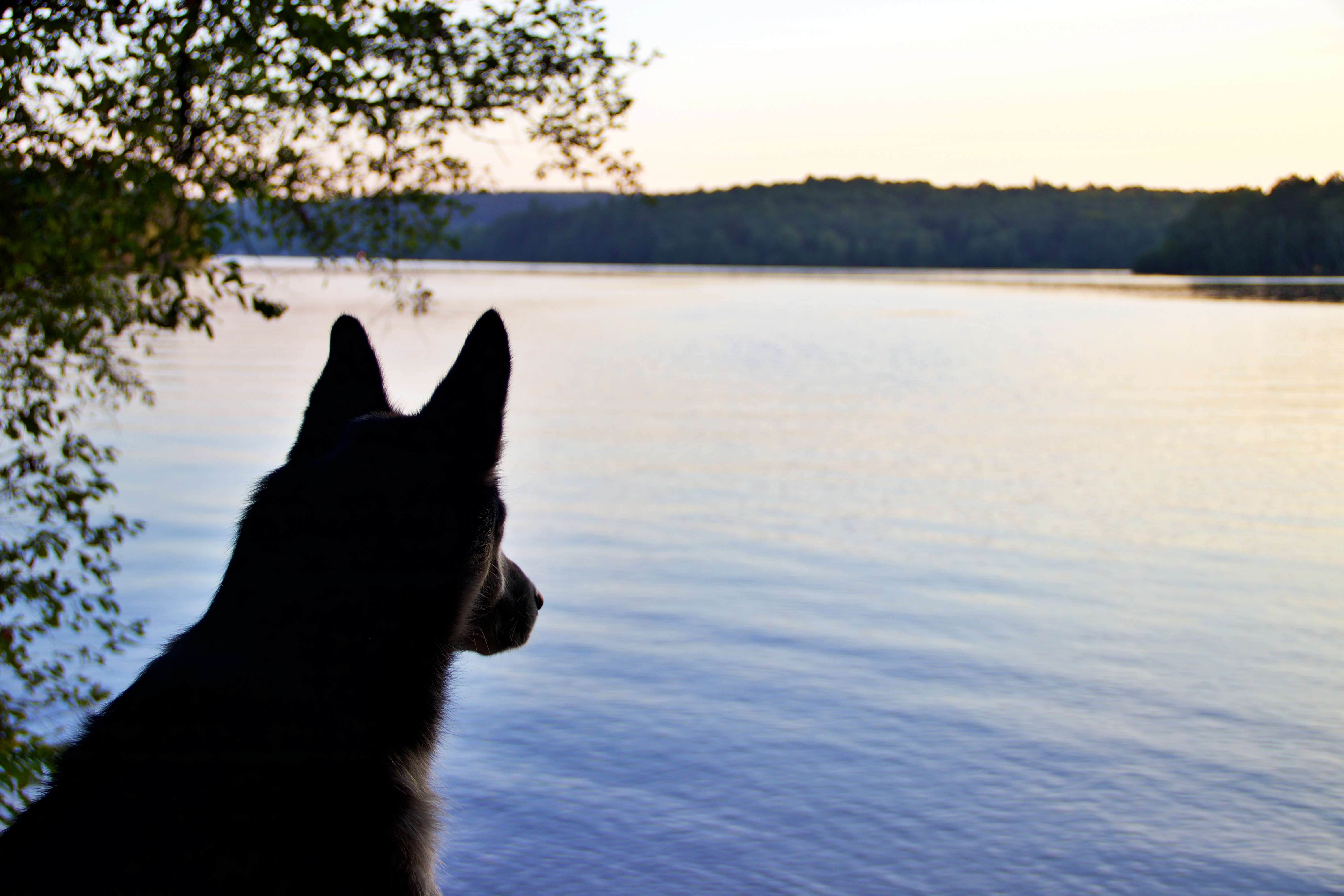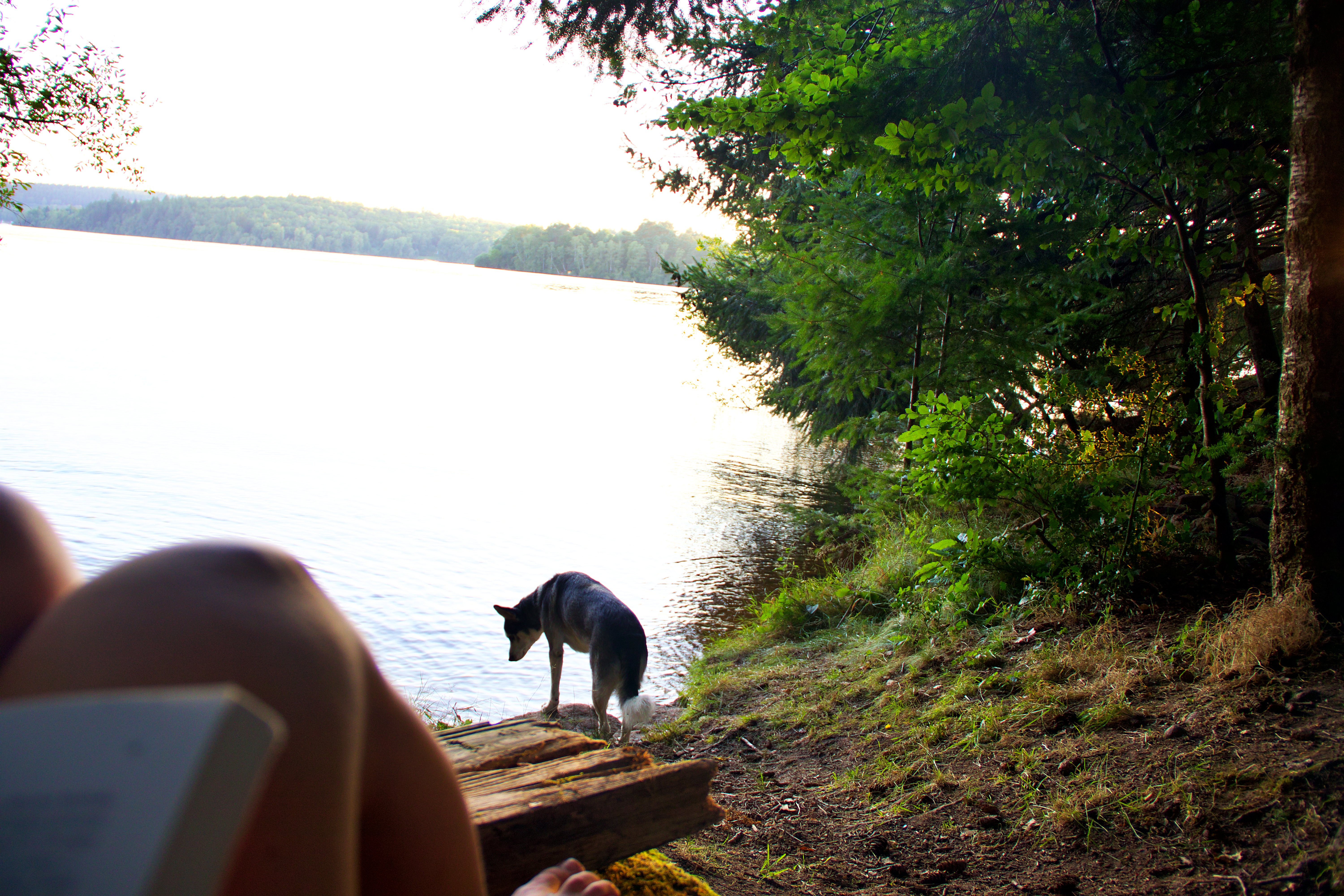 Le rivage du lac est prisé, et il n’est pas facile de trouver un endroit tranquille. Nous nous installons finalement à l’ombre des arbres, les pieds dans l’eau. Comme par réflexe, Mallo patauge puis creuse un trou pour s’y blottir. Rossell explore un peu avant de manger une boîte de pâtée et de s’endormir dans la remorque pour l’après-midi. Nous profitons également du site pour nous baigner et nous détendre, immergés dans le lac de 13h à 20h.