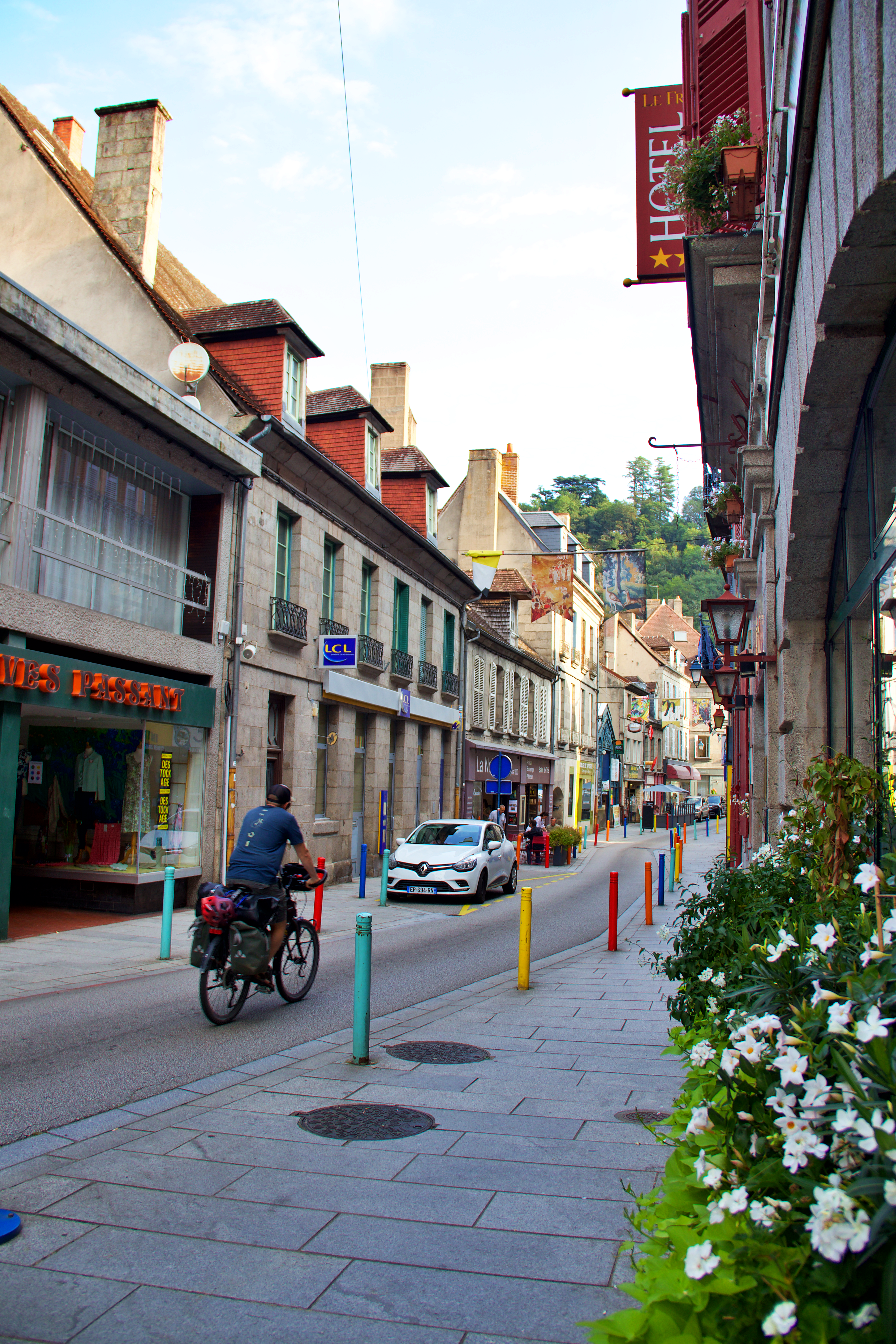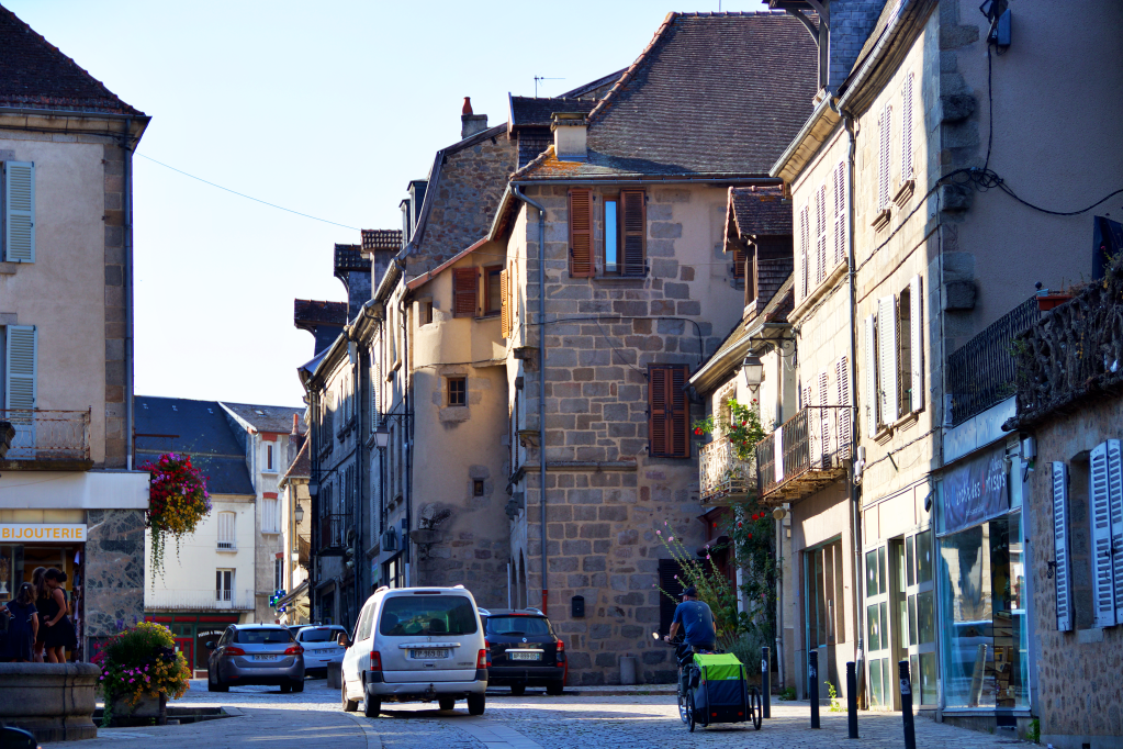 L’ascension vers la ville avait mis Alex à l’épreuve, mais il avait réussi à tirer la remorque chargée avec brio. Nous étions ensuite passés par Felletin, l’une des plus anciennes villes de la Creuse, reconnue pour être le berceau de la tapisserie, un art ancestral inscrit au patrimoine immatériel de l’UNESCO.