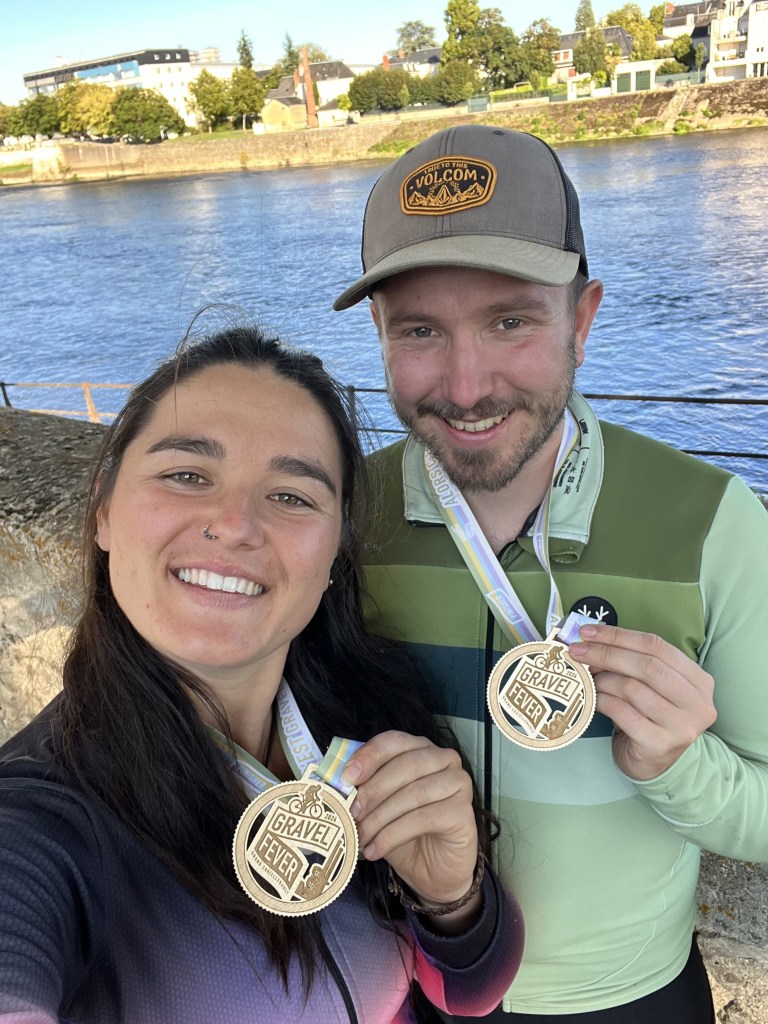 Une heure après mon arrivée j’aperçois mon cher Alex, qui fini sa première (sortie gravel) course gravel un peu fatigué mais très content de son expérience. Je suis contente de le retrouver et j’ai très envie que l’on échange sur nos ressentis et expériences.